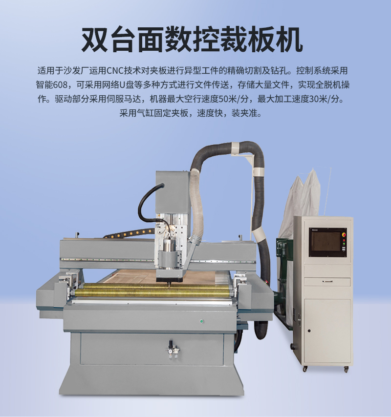 2.適用于沙發(fā)廠運(yùn)用CNC技術(shù)對(duì)夾板進(jìn)行異型工件的精確切割及鉆孔。