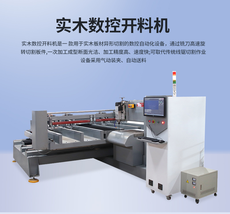 1.實木數控開料機是一款用于實木板材異形切割的數控自動化設備,通過銑刀高速旋轉切割板件,一次加工成型。