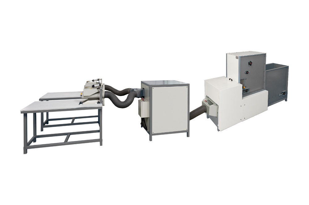 1.本生產(chǎn)線主要適用于沙發(fā)及床上用品生產(chǎn)廠中各種短纖維如(公仔棉、羊毛等)的梳理并填充工序,開松率達(dá)99%,纖維經(jīng)梳理后可達(dá)到非常均勻蓬松的效果。2.填充機上裝有時間電子控制裝置,并配有兩個填充口,可以精控制短纖維的填充量,誤差為±10%左右。3.本機自帶過載保護(hù)裝置及急停開關(guān),安全可靠。4.可選配雙頭填充外加拍平工作填充臺,使填充工序更加快速,填充后枕頭及靠墊平整美觀。