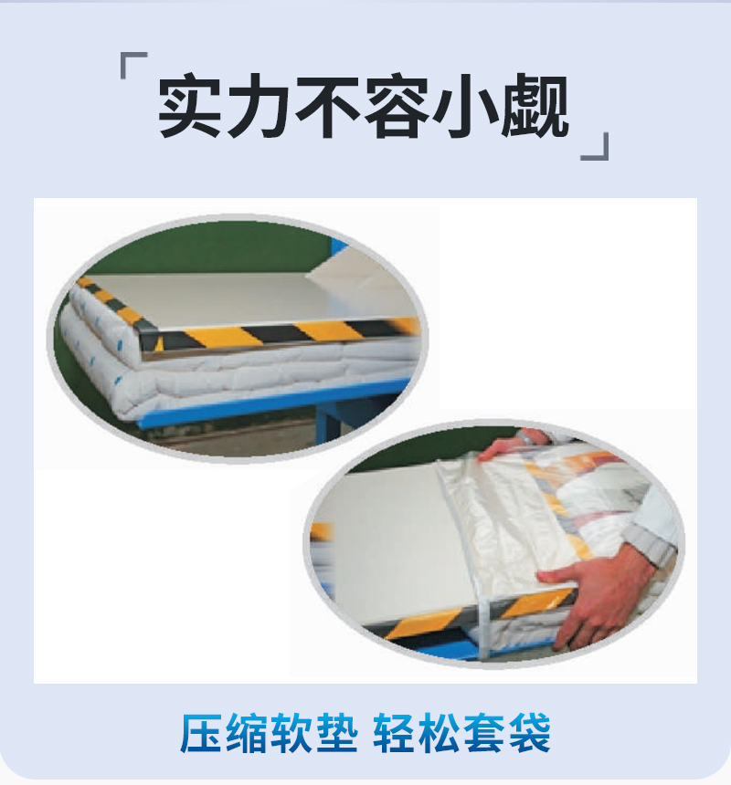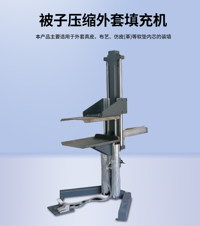 1.被子枕頭壓縮外套填充機適用于多個枕頭或者軟墊的壓縮套袋,針對于人工套袋費時費力而且套袋效果不平整的情況下,這款機器解決了以上難點。