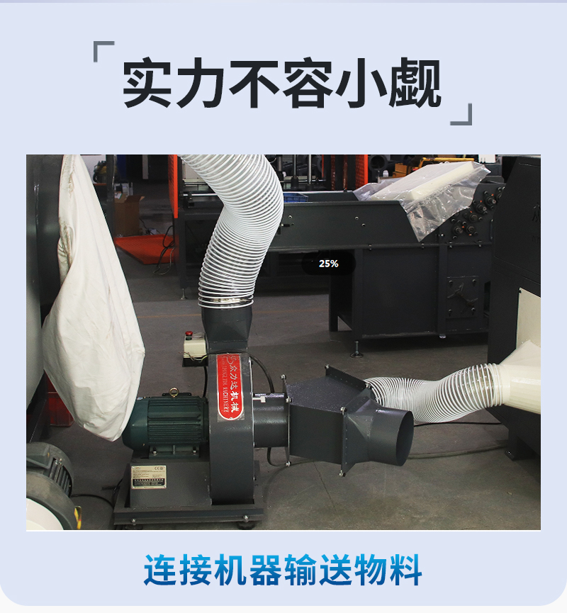 1.送料風機將開松后的公仔棉、PP棉、羽毛、碎海綿、鴨毛等輸送到攪拌分配箱里。