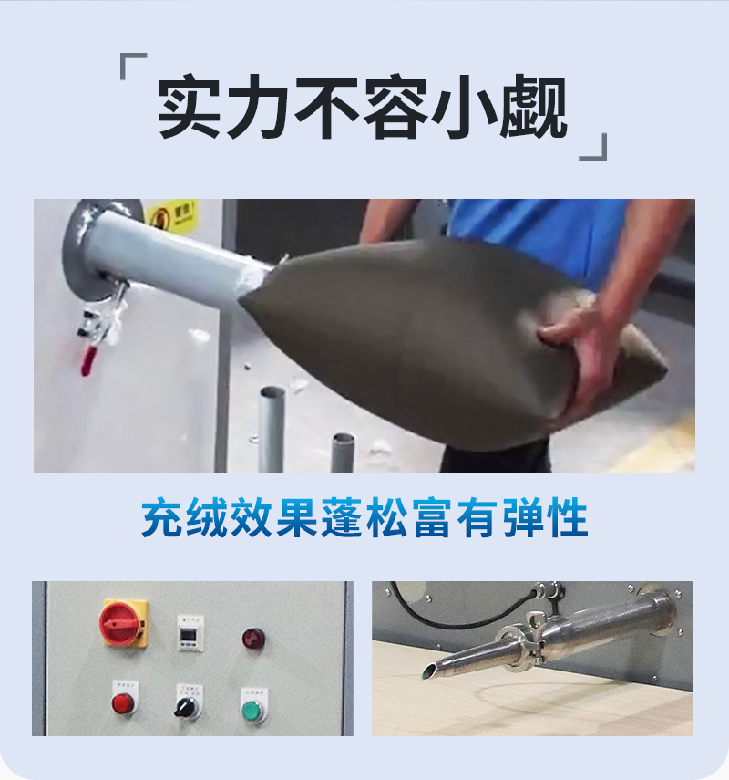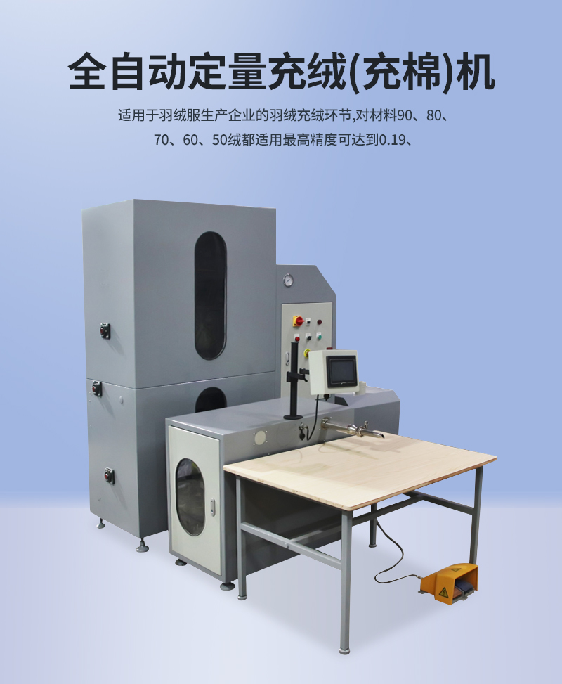 2.適用于羽絨服生產(chǎn)企業(yè)的羽絨充絨環(huán)節(jié),對材料90、80、70、60、50絨都適用。